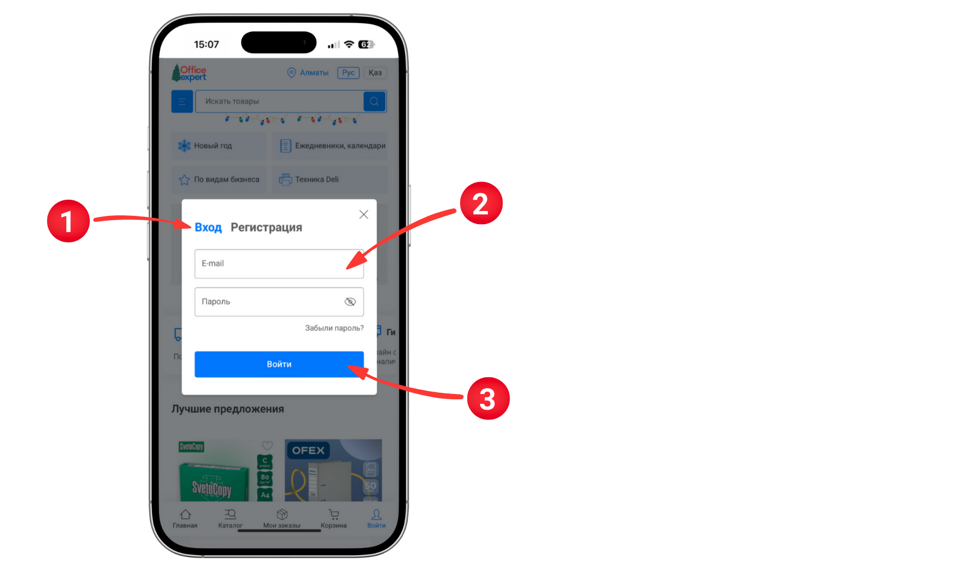 Чтобы зарегистрироваться или войти в личный кабинет приложения, выполните следующие действия: