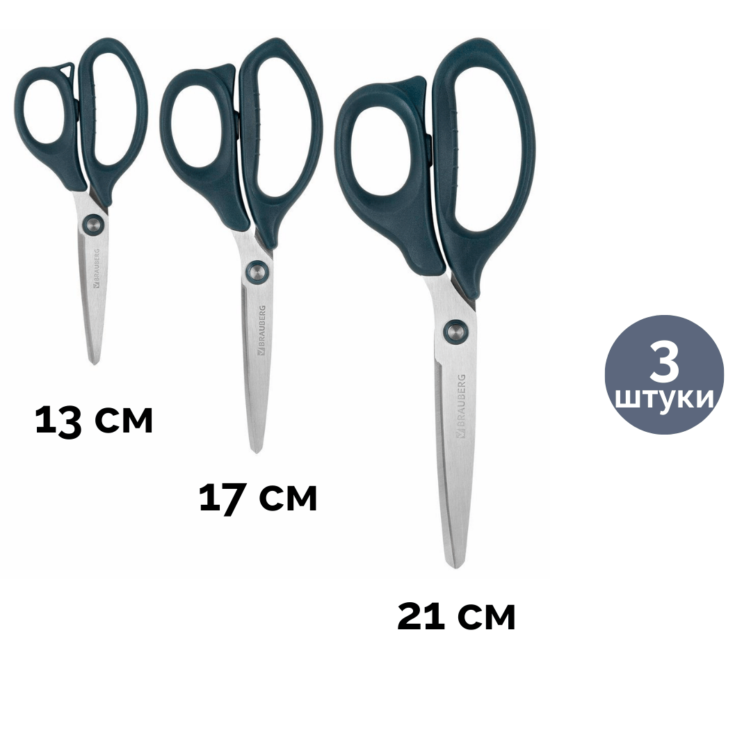 Ножницы от торговой марки «Brauberg» - подходят для использования в офисе, для ежедневной работы. Канцелярские ножницы предназначены для работы со всеми видами бумаги, картона, ткани, тонких полимеров (скотч, полиэтиленовая и полипропиленовая пленка). Материал корпуса из нержавеющей стали, ручки из пластика.