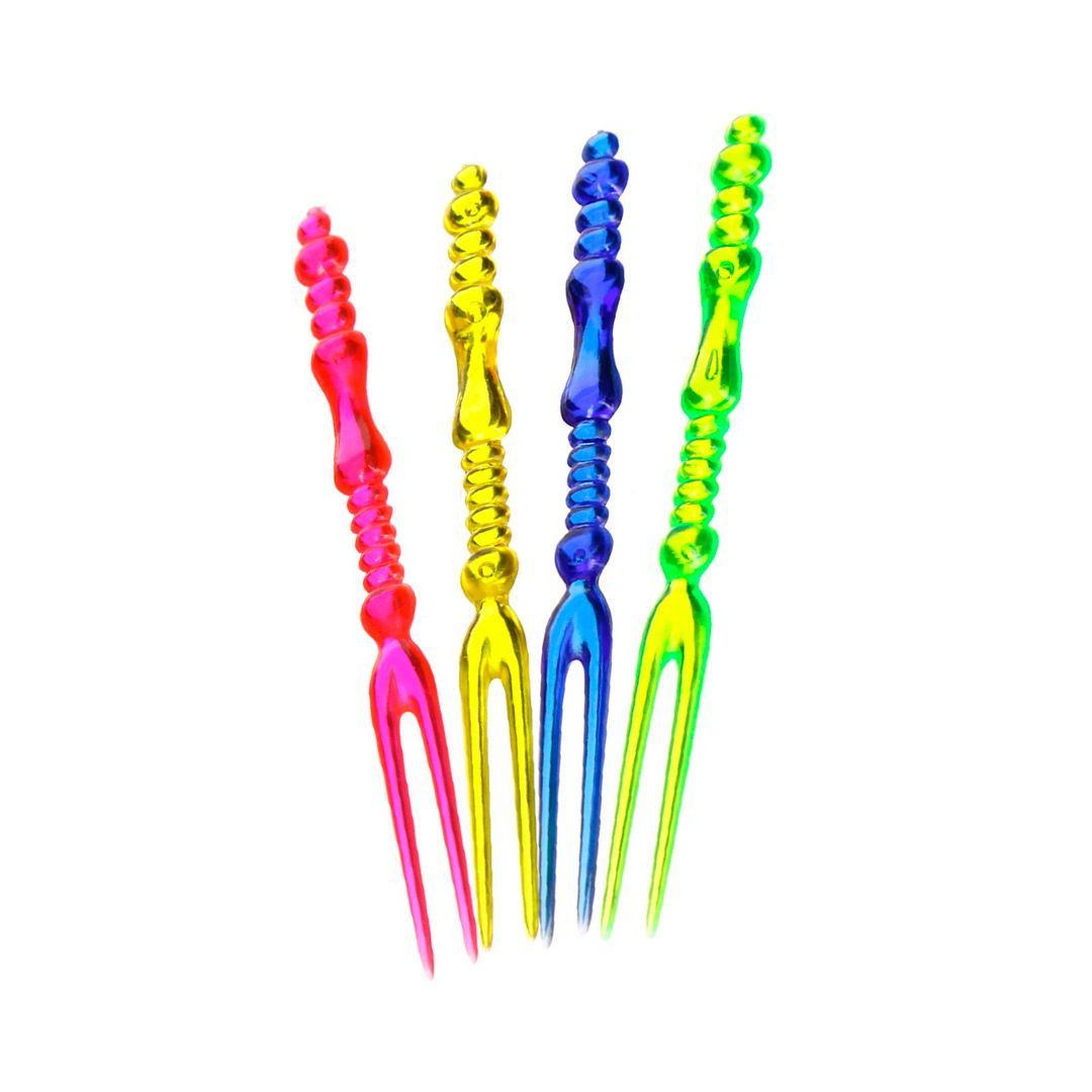 Пластиковая вилочка с двумя зубцами украсит любой коктейльный напиток. Подойдет так же для оформления блюд, фуршетов, салатов и десертов.